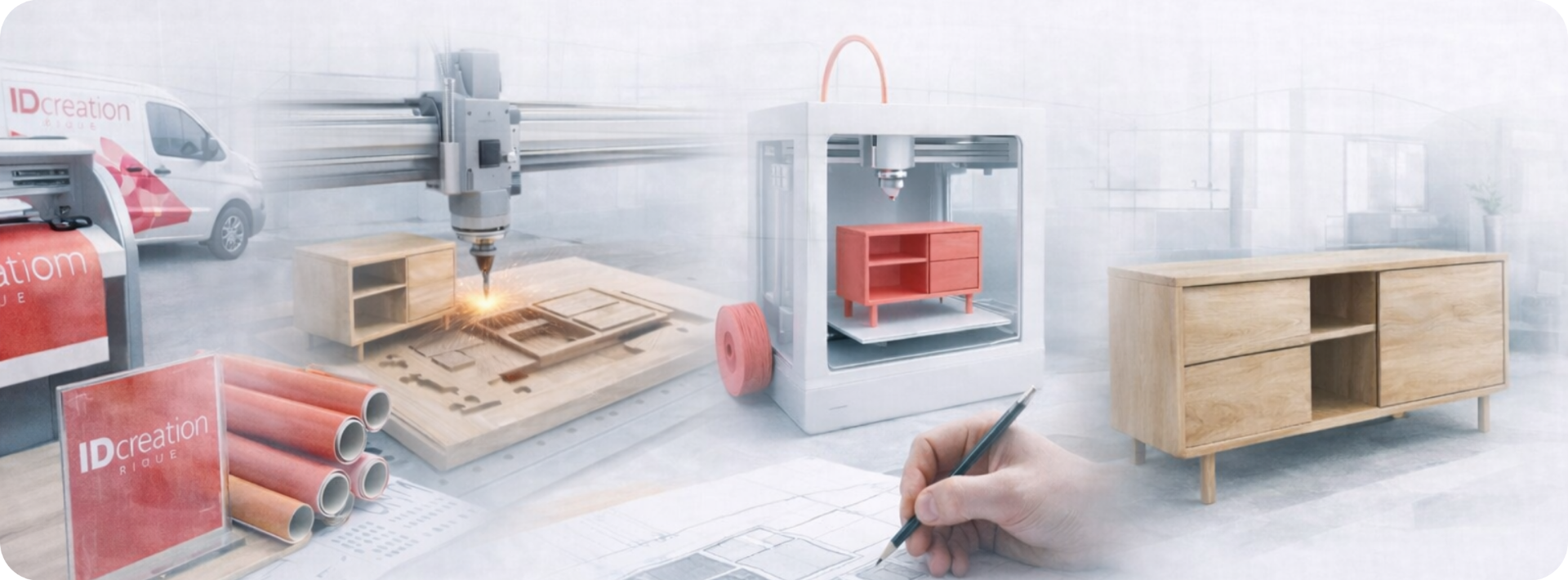 Passionné par l'innovation et la création, je m'appelle Guillaume Rique. J’ai fondé IDcreation pour offrir un service artisanal de haute qualité en impression 3D, découpe laser, CNC bois / usinage et mobilier sur mesure.